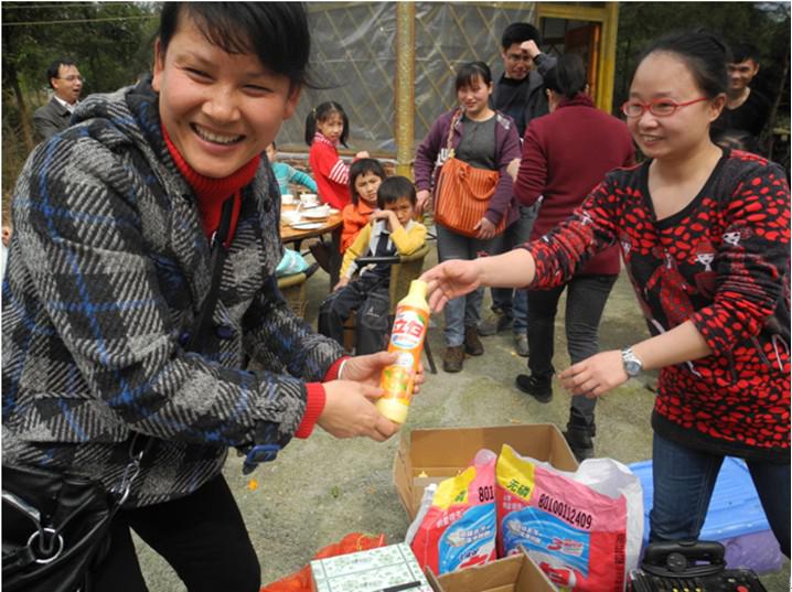 工作人員正在為獲獎(jiǎng)?wù)哳C獎(jiǎng)!看,笑得多開心!