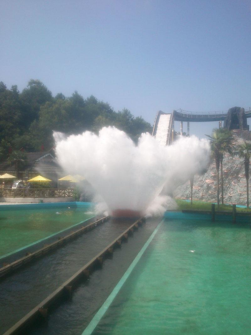 不經(jīng)意間,我們“游”到了南太平洋,聽著游人大聲的尖叫,看著飛漲而起的巨浪,我也忍不住去飛艇沖浪了,“哇噻!”當沖浪艇到達頂峰之后,全速下沖,激起千層浪,仿佛要將我們吞沒一樣,我們坐在飛艇里的人只能 感覺到四面八方的水,看不到藍空,炎炎夏日,濕了的感覺也是挺爽的。