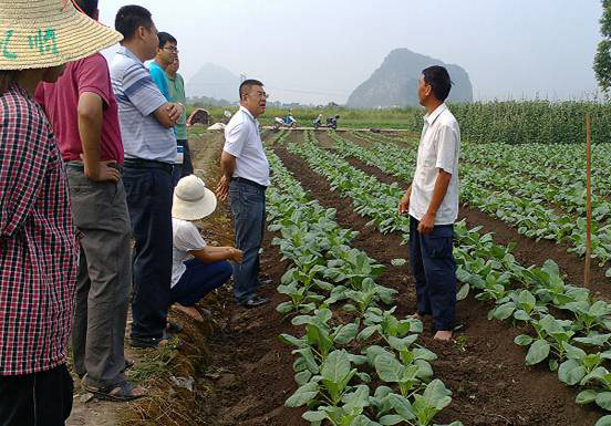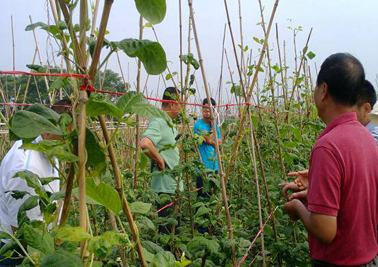 2014年9月15日,桂林集琦生化有限公司營(yíng)銷總監(jiān)李貴義先生及公司副總經(jīng)理馬志國(guó)先生來(lái)到桂林市大河鄉(xiāng)下陽(yáng)家村視察指導(dǎo)市場(chǎng)部生測(cè)小組的試驗(yàn)工作。在田間,李總、馬總視察了生測(cè)小組所做的薊馬藥劑防治豆角薊馬的藥效試驗(yàn),指出了我們的不足之處并就如何與農(nóng)戶溝通試驗(yàn)用地給出了指導(dǎo)性的意見(jiàn),還與當(dāng)?shù)剞r(nóng)戶進(jìn)行了深入的交流,就此向農(nóng)戶給予用藥及耕種管理建議。