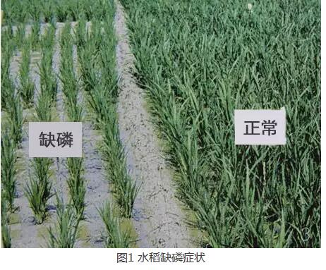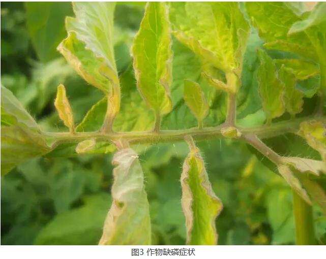 在作物生長初期,磷肥的作用表現得不是很明顯,但在中后期,缺磷將影響氮的有效積累和蛋白質的合成。缺磷時,除生長矮小、瘦弱,直立外,還表現分蘗,分枝少,葉色暗綠缺乏光澤,下部老葉和莖稈呈紫紅色,開花結果少,且延遲成熟,產量低。作物品種不同,其缺磷癥狀也有不一樣。