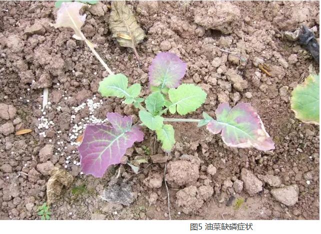 油菜缺磷:油菜對缺磷最為敏感,反應也最早,嚴重缺磷時,子葉展開后便出現蒼老暗綠變厚的缺磷癥狀,出葉遲,葉面積??;莖與葉柄均呈紫紅色,植株矮小,不分枝;現蕾開花推遲,籽粒不飽滿,產量下降,含油率低。