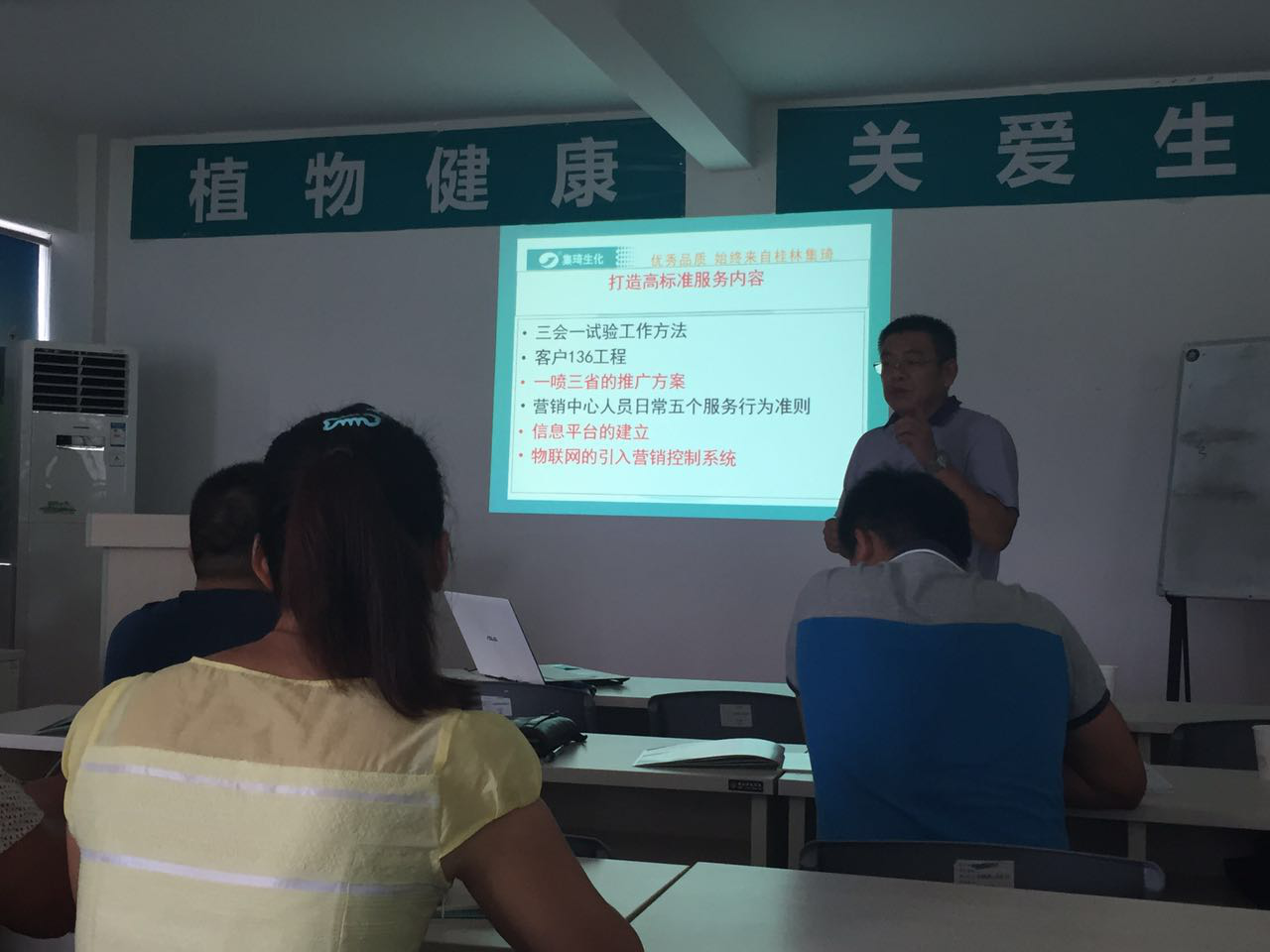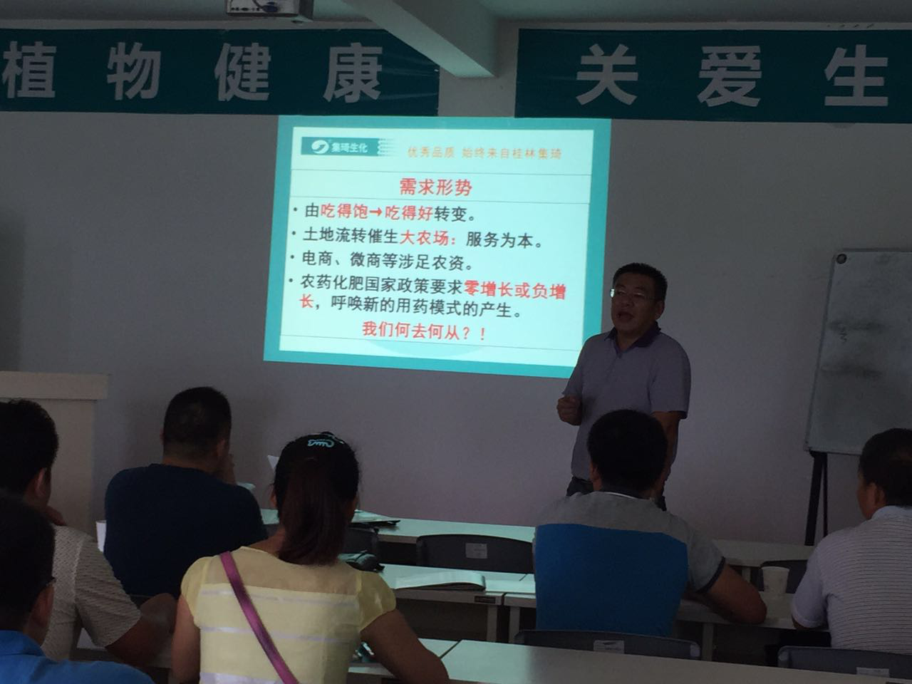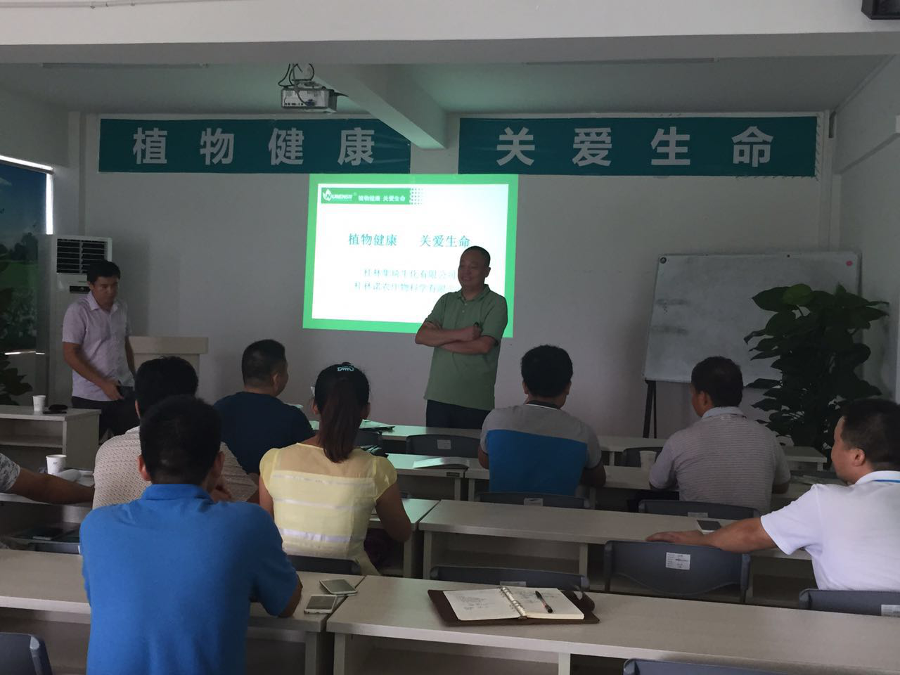 9月6日,梧州市金園貿(mào)易公司陳總及其員工一行6人蒞臨公司,并與桂林諾農(nóng)李總、桂林集琦馬總、及公司核心技術(shù)人員舉行植保技術(shù)交流研討會。會議主題主要圍繞國家農(nóng)藥化肥零增長或負增長的政策要求,提出公司應(yīng)對方案,以農(nóng)藥化肥零增長或負增長為己任,堅決貫徹植物健康 關(guān)愛生命的健康植保使命,打造無害化、有機化產(chǎn)品平臺、打造高標準服務(wù)平臺、推廣一噴三省一增效施藥技術(shù)解決方案。