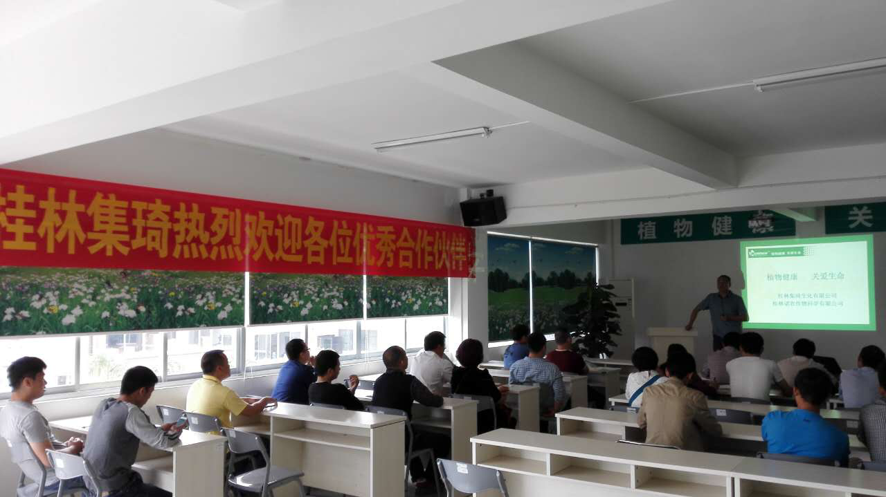 2015年10月29日桂林集琦生化有限公司迎來了山東臨沂春雨農(nóng)林科技有限公司及其優(yōu)秀合作伙伴,一行共14人來桂學(xué)習(xí)交流。公司副總經(jīng)理李貴義先生針對當(dāng)前形勢做了深刻分析:我們在中國農(nóng)業(yè)這個大趨勢下,堅定“植物健康 關(guān)愛生命”的發(fā)展理念;堅持高效、低毒、環(huán)保的產(chǎn)品方向;并就當(dāng)前農(nóng)藥化肥零增長做了詳盡解析:農(nóng)藥化肥零增長是必然趨勢,發(fā)展高效植保器械,和推廣一噴三省精準(zhǔn)減量施藥技術(shù)是必然選擇;重點講解了集琦諾農(nóng)公司綠色健康農(nóng)業(yè)種植服務(wù)模式。