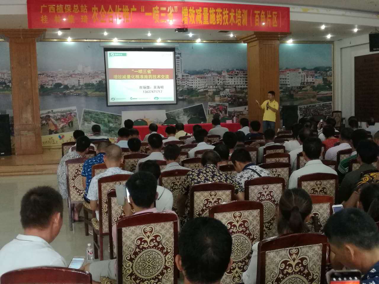 “一噴三省增效減量技術(shù)”培訓(xùn)班。此次培訓(xùn)班分為現(xiàn)場(chǎng)觀摩與室內(nèi)培訓(xùn)兩部分,由百色市植保