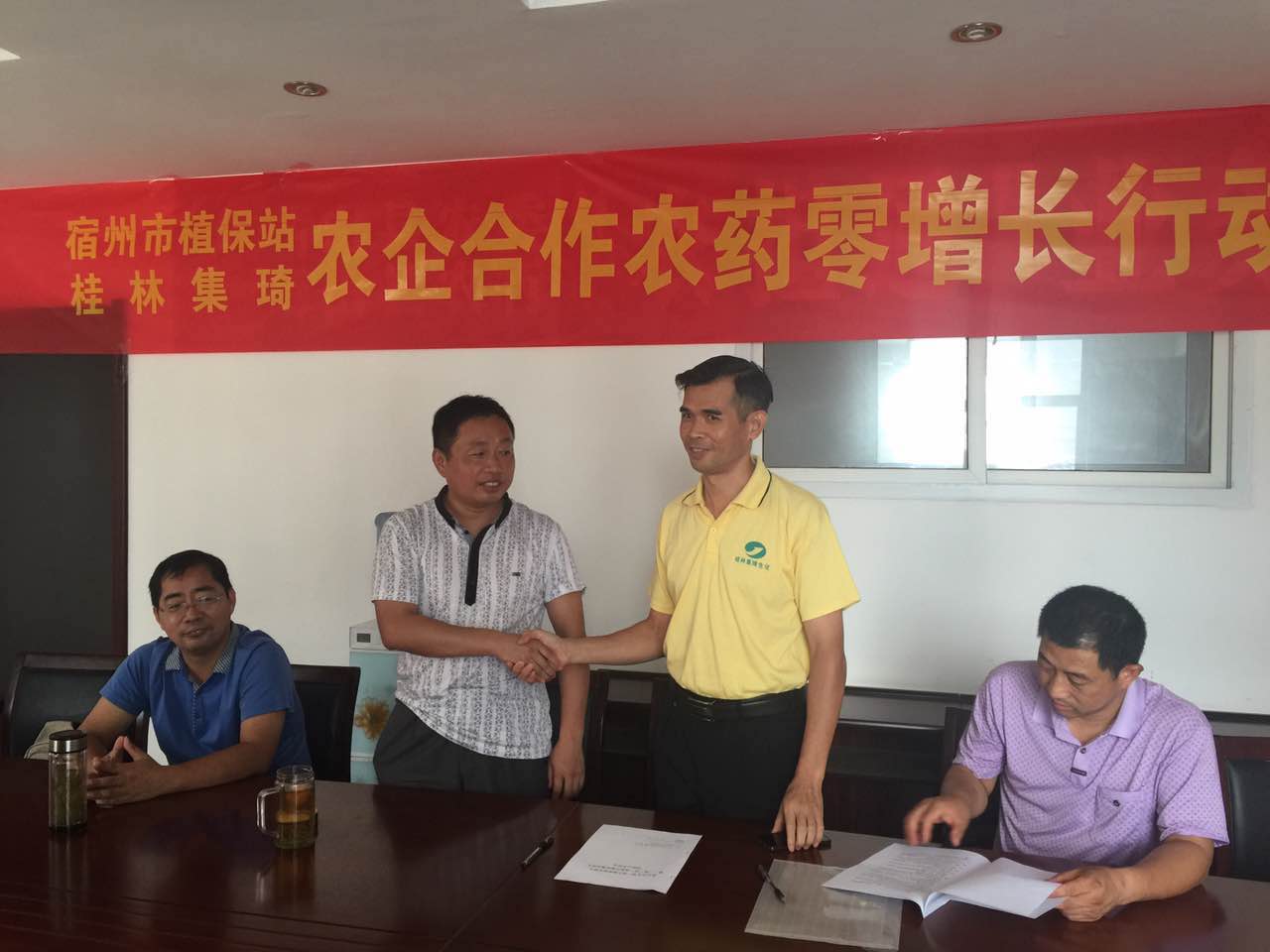 飛防觀摩會(huì)后,宿州市植檢植保站與桂林集琦舉行了“農(nóng)企合作農(nóng)藥零增長行動(dòng)簽約儀式”,
