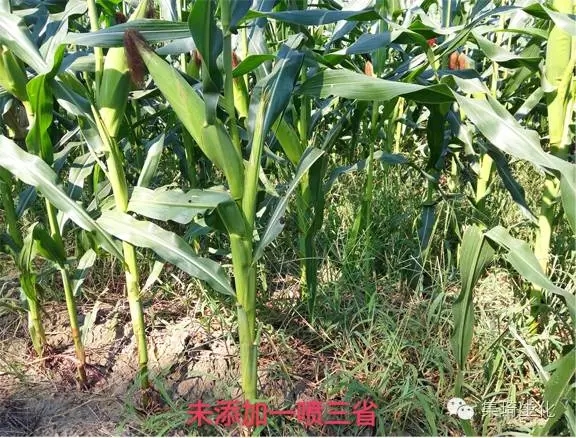 玉米莖葉減藥除草的效果,親身感受到是否使用一噴三省呈現(xiàn)出巨大差異。