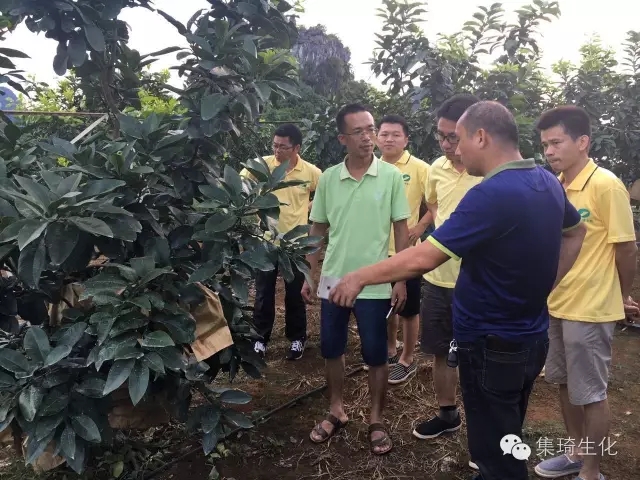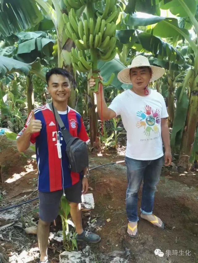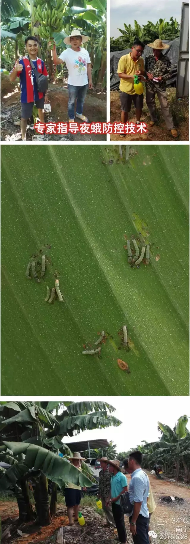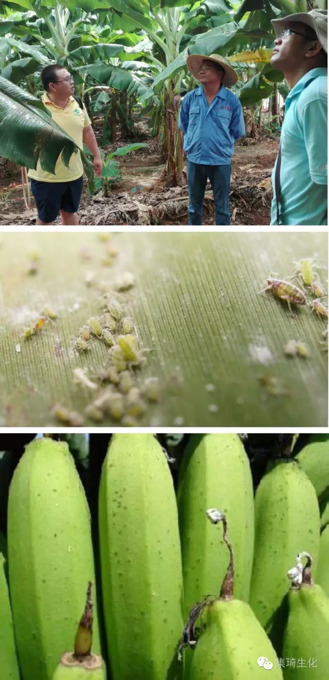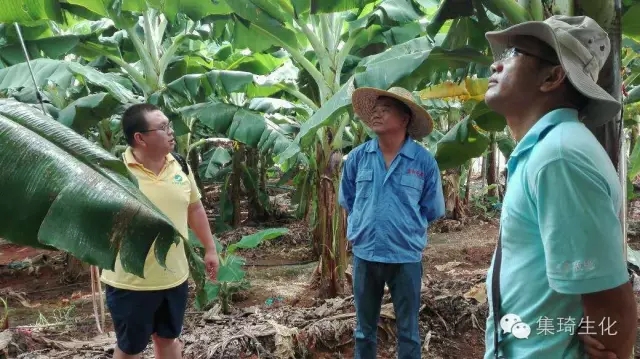 南寧沃邦黃平明總經(jīng)理與集琦專家一起到柑橘、香蕉基地探討一噴三省與綠色防控技術(shù)。