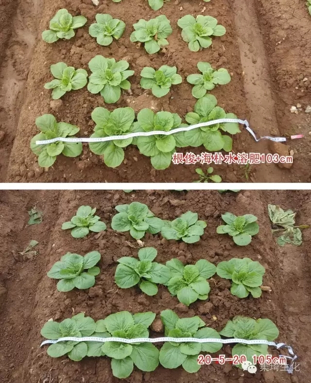 試驗(yàn):為驗(yàn)證根俊+海樸大量元素水溶肥的肥效,2015年6月16日,市場(chǎng)部老師王安葦在白菜地做了根