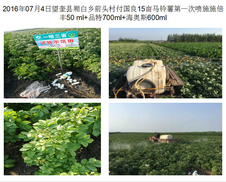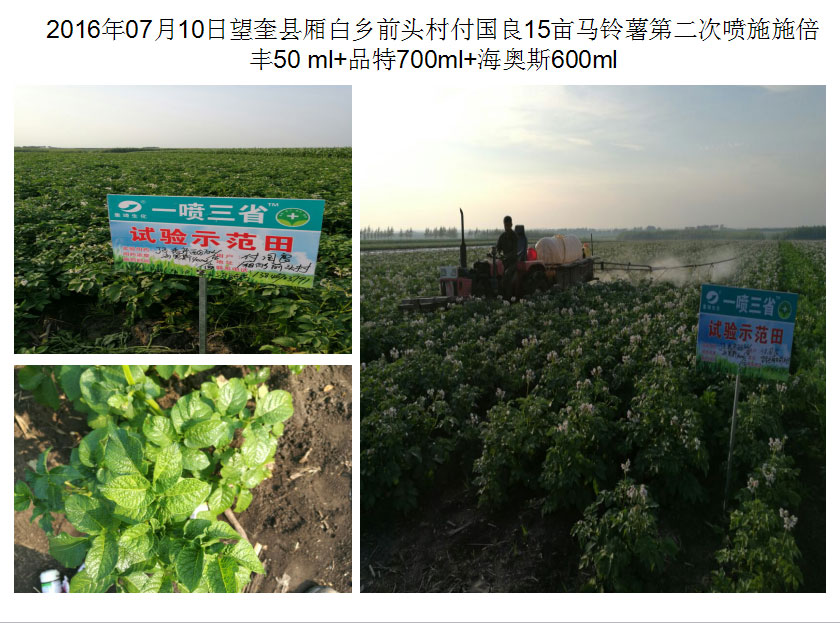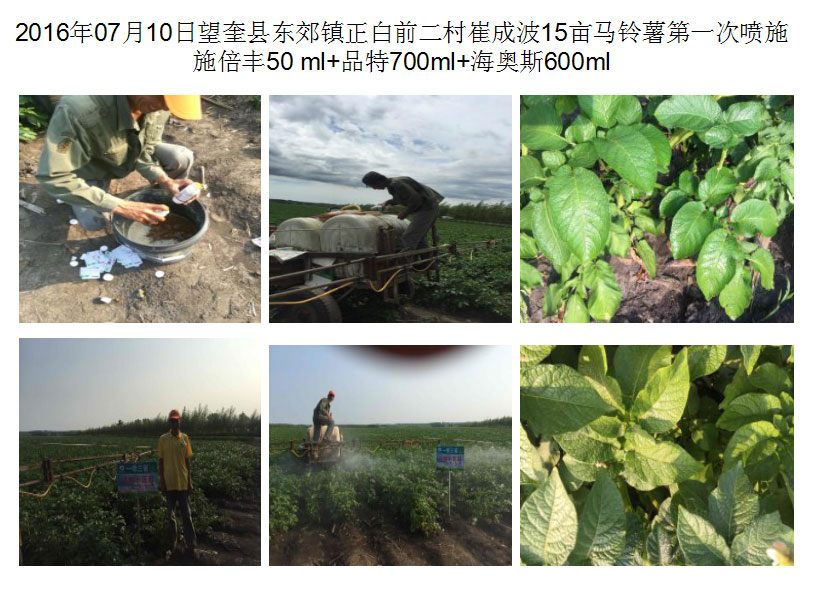 驗(yàn)證品特在馬鈴薯上噴霧使用,對馬鈴薯晚疫病病害的防治效果及馬鈴薯生長期的安全性,為產(chǎn)品的