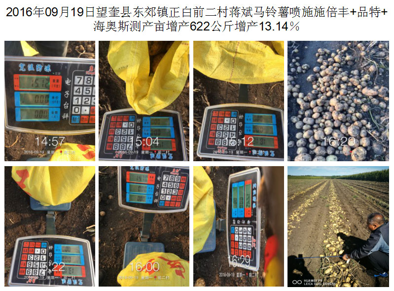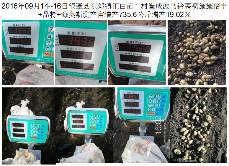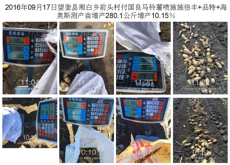 2、增產(chǎn)效果比較明顯, 3個處理地塊平均增產(chǎn)10%以上,馬鈴薯大小均勻,優(yōu)質(zhì)商品薯率達(dá)到75%,常
