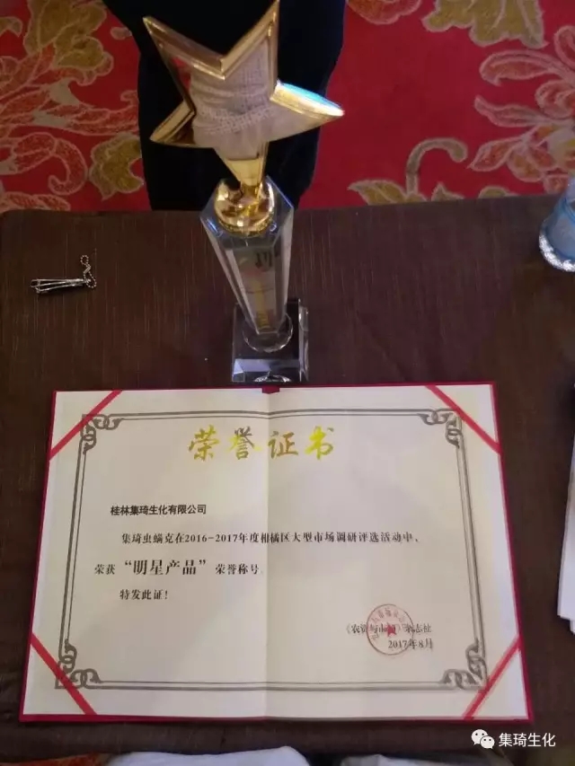 在“聚焦品質(zhì),布橘未來(lái)”的柑橘千商大會(huì)上,桂林集琦生化有限公司蟲(chóng)螨克榮獲“柑橘明星產(chǎn)