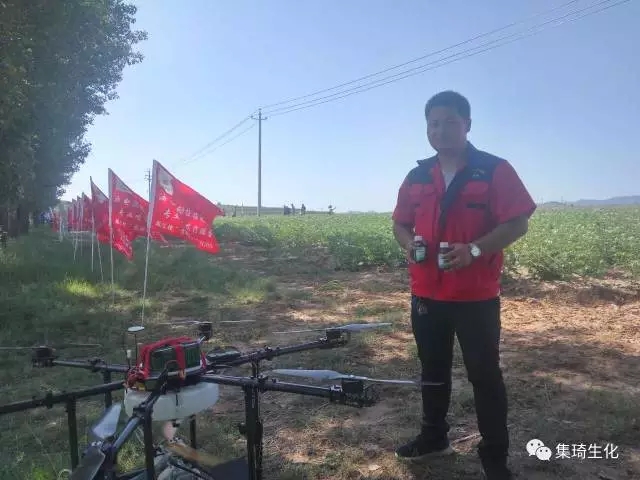 (以上圖為飛防專用助劑農(nóng)健飛結合無人機噴霧器械示范演示現(xiàn)場)
