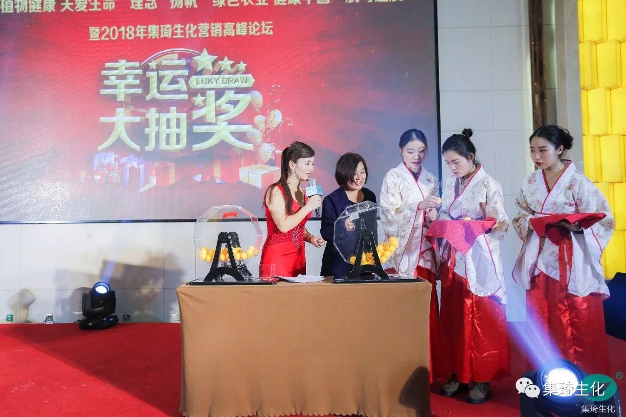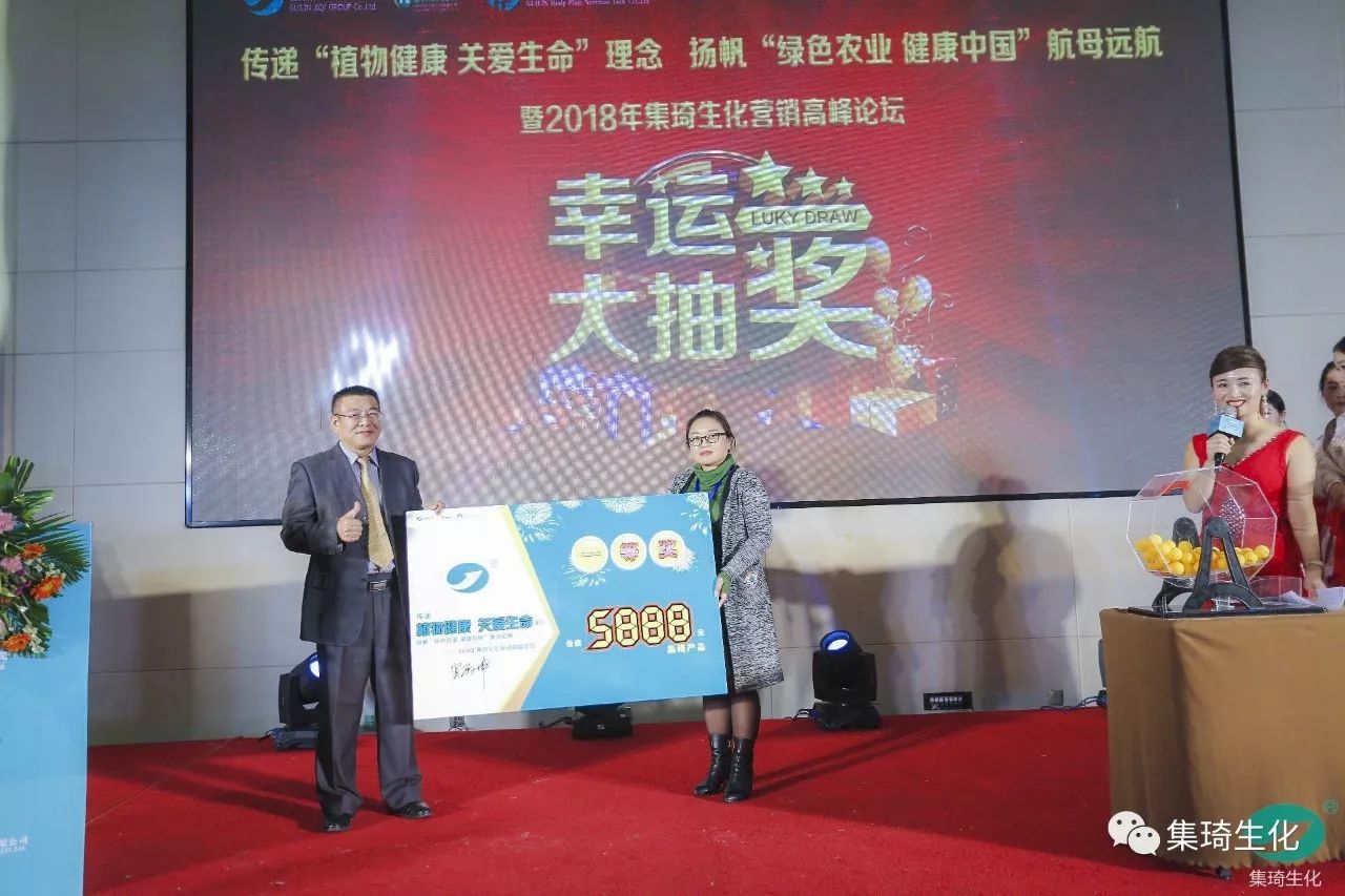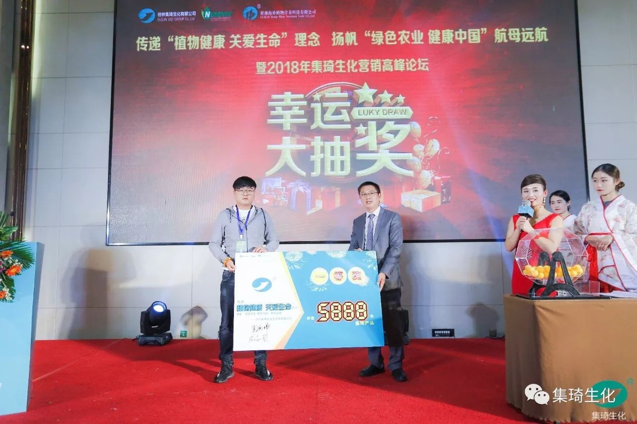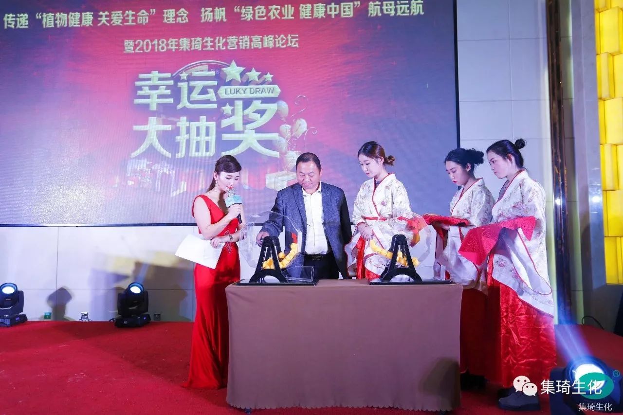 儀式首先由集琦銷售部長石志兵宣讀集琦生化戰(zhàn)略合作協(xié)議及抽獎?wù)?,隨后,會上50多位客戶依次上臺簽約,與桂林集琦達成2018年度戰(zhàn)略合作協(xié)議。本次簽約與抽獎環(huán)節(jié)新穎時尚,平板機簽約,與科技接軌,搖號機抽獎,確保公平、公正和公開。