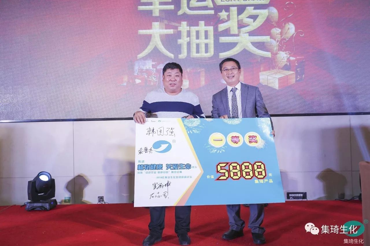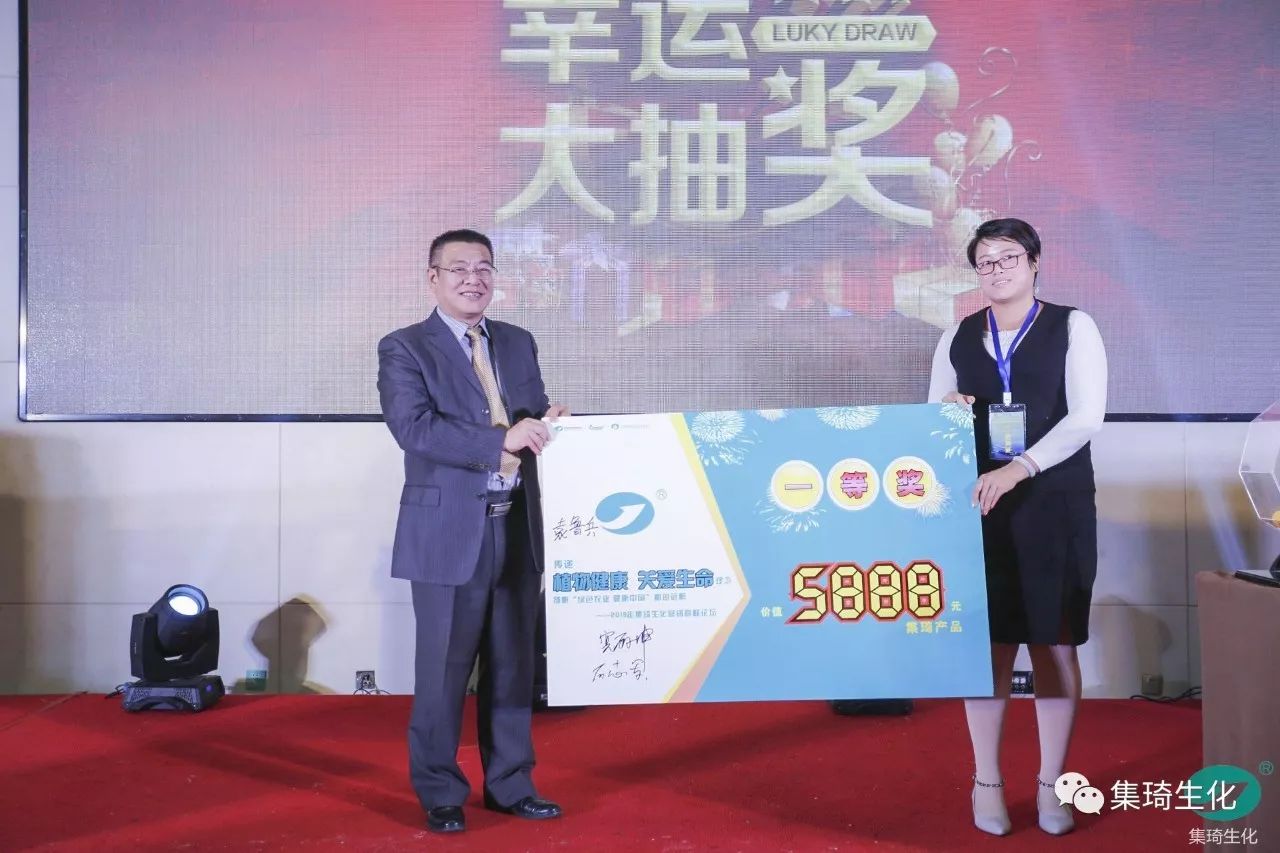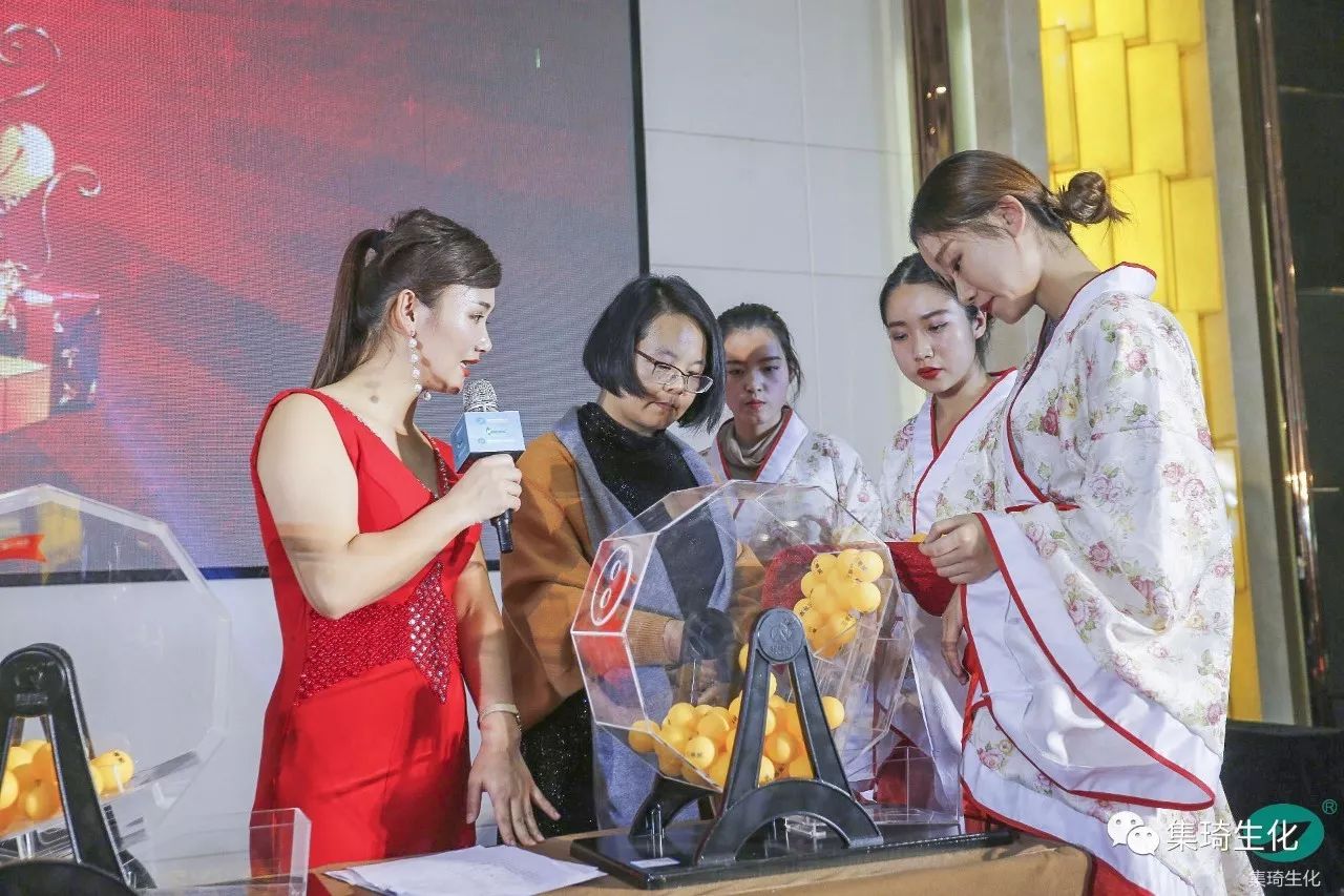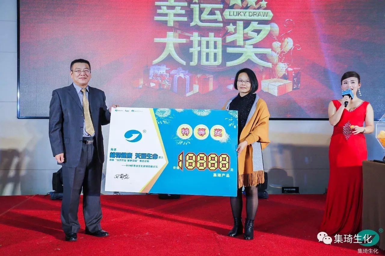 儀式首先由集琦銷售部長石志兵宣讀集琦生化戰(zhàn)略合作協(xié)議及抽獎?wù)?,隨后,會上50多位客戶依次上臺簽約,與桂林集琦達成2018年度戰(zhàn)略合作協(xié)議。本次簽約與抽獎環(huán)節(jié)新穎時尚,平板機簽約,與科技接軌,搖號機抽獎,確保公平、公正和公開。