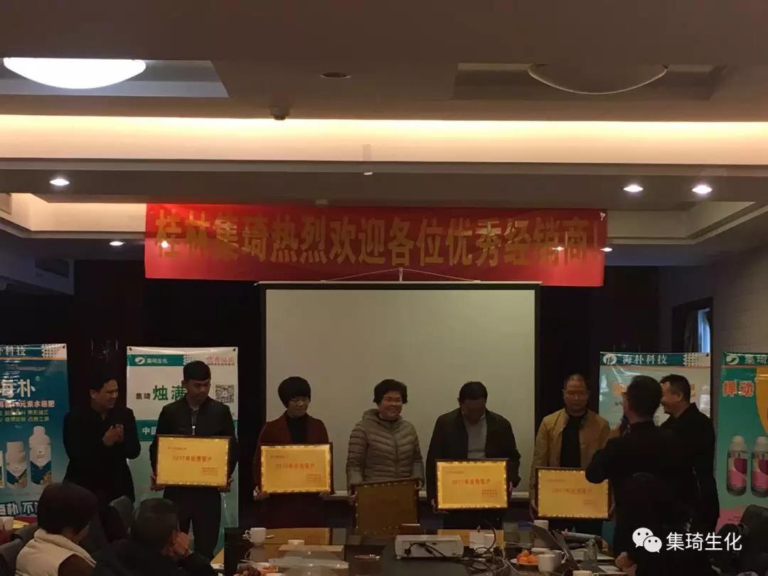 2018年1月6日,桂林集琦攜手漳州宇豪農(nóng)資舉辦桂林集琦產(chǎn)品專場推介會,同時召開燭滿克產(chǎn)品上市會,此次會議成功訂貨80余萬。這次會議的成功召開,離不開桂林集琦在漳州市場上多年的品質(zhì)及信譽保證,也離不開集琦人在市場上多年的耕耘,更離不開我們客戶對我們的大力支持,感謝你們!有你們,集琦的明天會更美好!