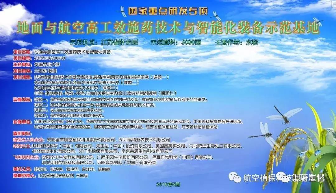 本次江蘇盱眙水稻聯(lián)合試驗(yàn)示范由全國(guó)農(nóng)業(yè)技術(shù)推廣服務(wù)中心、國(guó)家航空植??萍紕?chuàng)新聯(lián)盟、華南農(nóng)業(yè)大學(xué)國(guó)家精準(zhǔn)農(nóng)業(yè)航空施藥技術(shù)國(guó)際聯(lián)合研究中心、中國(guó)農(nóng)業(yè)科學(xué)院植物保護(hù)研究所、農(nóng)業(yè)農(nóng)村部航空植保重點(diǎn)實(shí)驗(yàn)室、江蘇省植保植檢站、江蘇省盱眙縣植保站共同聯(lián)合組織實(shí)施。