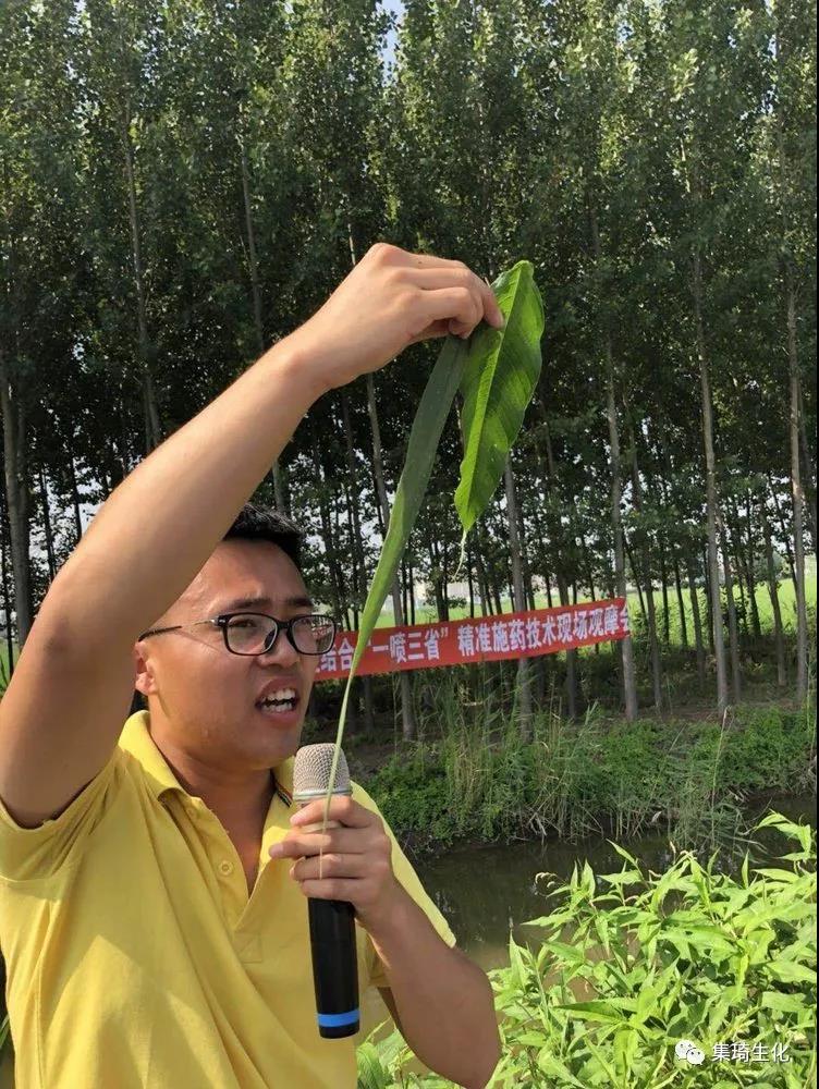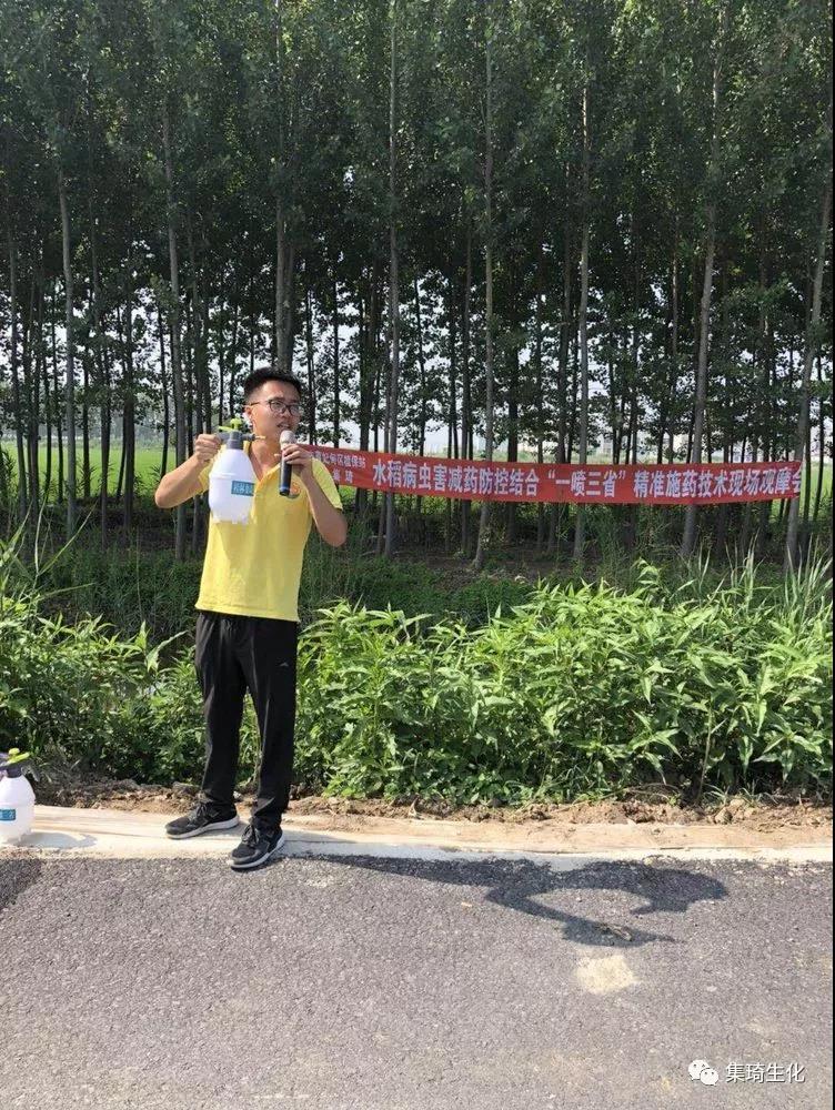 觀摩會由桂林集琦生化有限公司京津廊唐秦業(yè)務(wù)經(jīng)理武振強主講,他給大家介紹了水稻“一噴三省”增效減量化精準施藥與綠色防控技術(shù),并組織學員們進行現(xiàn)場演示及觀摩。