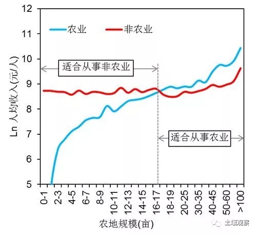 圖:農(nóng)地規(guī)模的均衡點(diǎn)(2015年數(shù)據(jù))