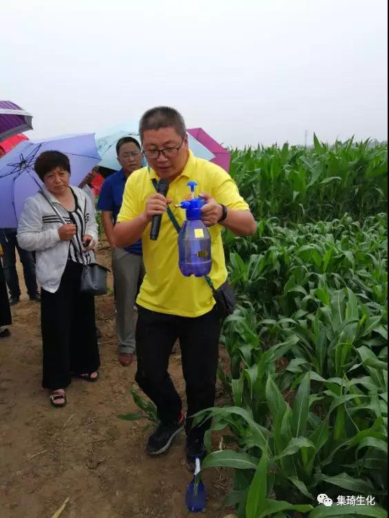 7月7日參會(huì)代表分別前往了赤峰市松山區(qū)、翁牛特旗的三個(gè)國家玉米高質(zhì)高效創(chuàng)建示范基地進(jìn)行了現(xiàn)場觀摩。在現(xiàn)場,桂林集琦生化有限公司京津冀蒙大區(qū)經(jīng)理孫小偉就“一噴三省”增效減量化精準(zhǔn)施藥技術(shù)進(jìn)行了技術(shù)介紹及現(xiàn)場演示。
