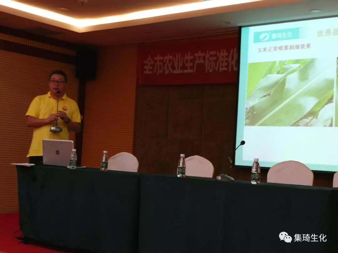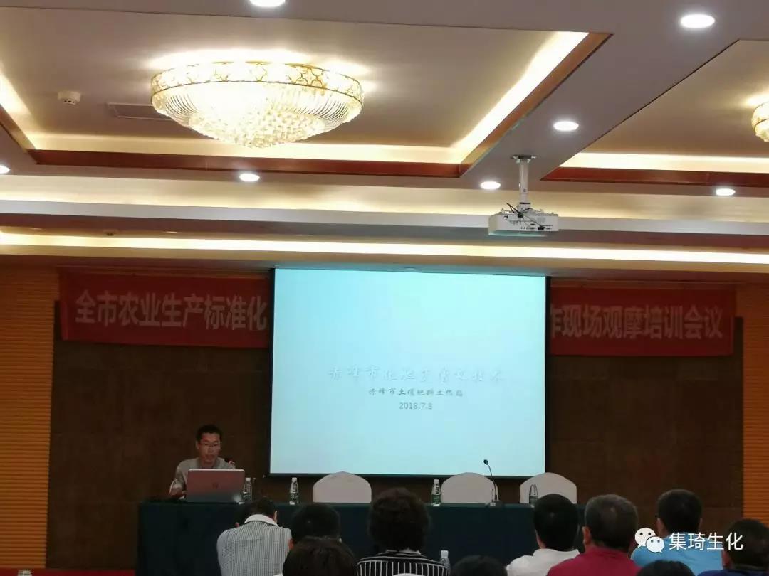 2018年7月8日,赤峰市農(nóng)業(yè)生產(chǎn)標(biāo)準(zhǔn)化暨農(nóng)藥化肥用量負(fù)增長推進(jìn)工作室內(nèi)培訓(xùn)會(huì)在赤峰市金帝酒店召開。赤峰市農(nóng)技推廣站、土肥站、植保站負(fù)責(zé)人分別就綠色高質(zhì)高效創(chuàng)建、農(nóng)業(yè)生產(chǎn)標(biāo)準(zhǔn)化、化肥農(nóng)藥負(fù)增長技術(shù)路徑等內(nèi)容進(jìn)行了解讀。桂林集琦派員參加此次會(huì)議,并就“一噴三省”增效減量化精準(zhǔn)施藥技術(shù)進(jìn)行了培訓(xùn)。