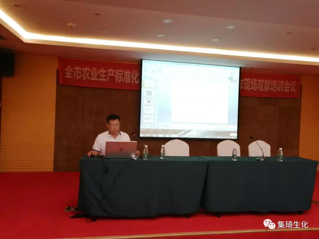 赤峰市農(nóng)業(yè)技術(shù)推廣站副站長李海東做關(guān)于全市農(nóng)業(yè)生產(chǎn)標(biāo)準(zhǔn)化推進(jìn)工作培訓(xùn)