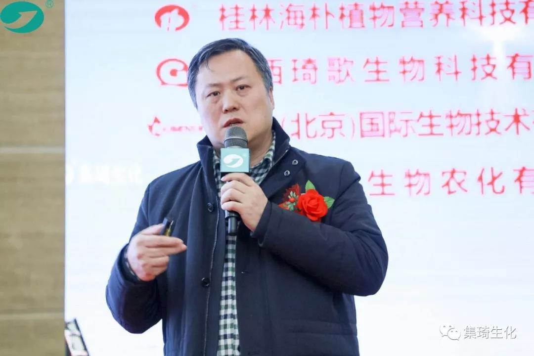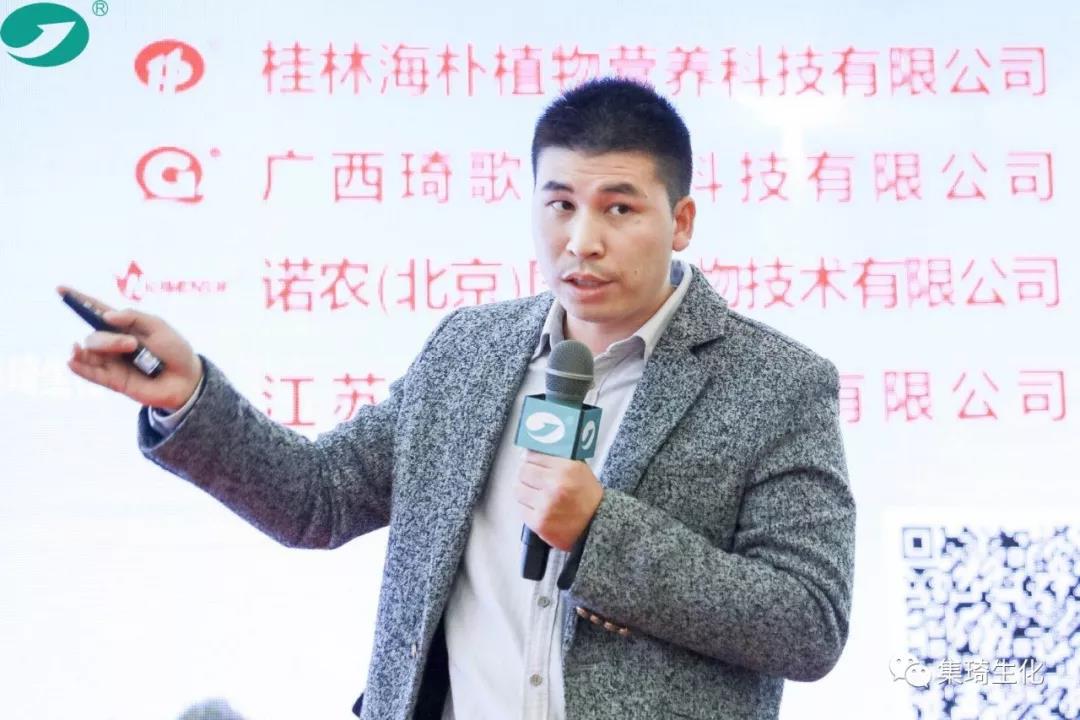 桂林集琦子公司廣西琦歌生物科技有限公司副總經(jīng)理張英俊介紹公司成立背景及產(chǎn)品。張總指出在國家農(nóng)藥化肥零增長的政策驅(qū)動下,藥肥成為省力、省藥的趨勢。