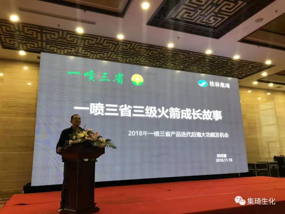 市場部產(chǎn)品經(jīng)理鄧祥源通過對一噴三省助劑深入剖析,闡述了三級火箭的成長故事,同時清晰的講述了各級火箭解決的實際問題。2018年集琦對一噴三省進(jìn)行升級迭代,強(qiáng)大的新功能和省工、省藥、省水的特點成為市場新的增長點。