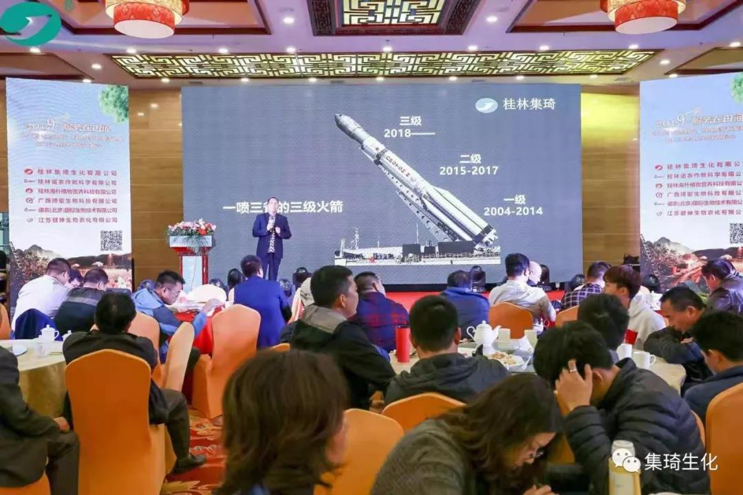 2018年11月18日桂林集琦生化有限公司"2019服務(wù)在田間‘一噴三省+四態(tài)防控’綠色集成方案落地年”暨集琦生化營銷高峰論壇在桂林隆重舉行,來自全國各地的130多家優(yōu)秀經(jīng)銷商及公司領(lǐng)導(dǎo)參加了此次會議。