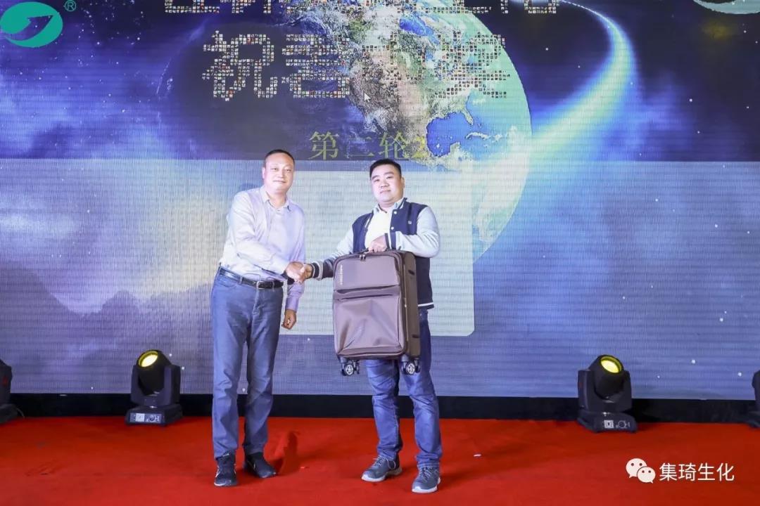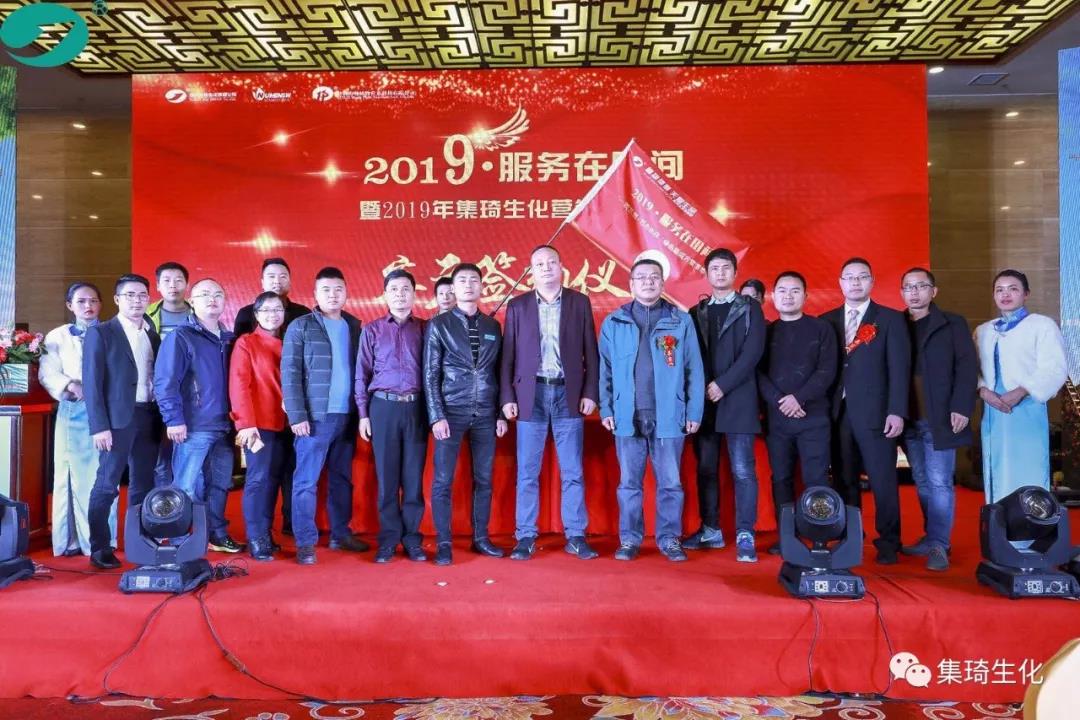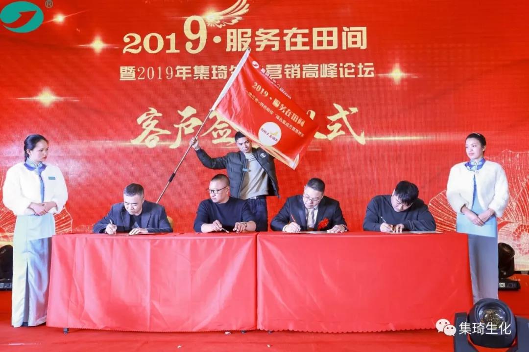 儀式首先由集琦銷售部胡海偉宣讀集琦生化戰(zhàn)略合作協(xié)議及抽獎?wù)?,隨后,會上10大戰(zhàn)區(qū)客戶依次上臺簽約,與桂林集琦達(dá)成2019年度戰(zhàn)略合作協(xié)議。