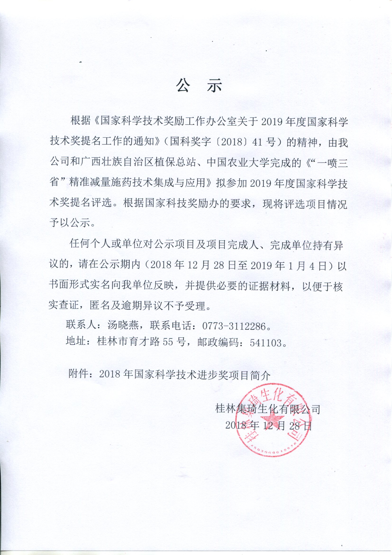 關(guān)于參加2019年度國(guó)家科學(xué)技術(shù)獎(jiǎng)廣西提名項(xiàng)目的公示