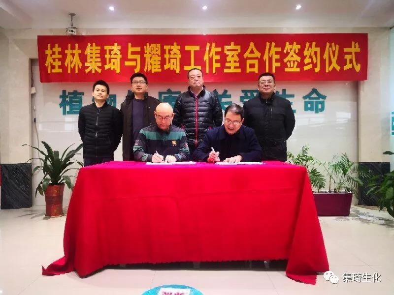 為做強(qiáng)綠色健康產(chǎn)業(yè),達(dá)成2019年經(jīng)營目標(biāo),2019年1月21日桂林集琦生化有限公司與耀琦工作室簽定戰(zhàn)略合作協(xié)議。雙方就經(jīng)營戰(zhàn)略制定、框架體系搭建等重要事項(xiàng)達(dá)成合作咨詢意向,共同推進(jìn)桂林集琦生化“一噴三省+四態(tài)防控”綠色健康事業(yè)快速、健康發(fā)展。