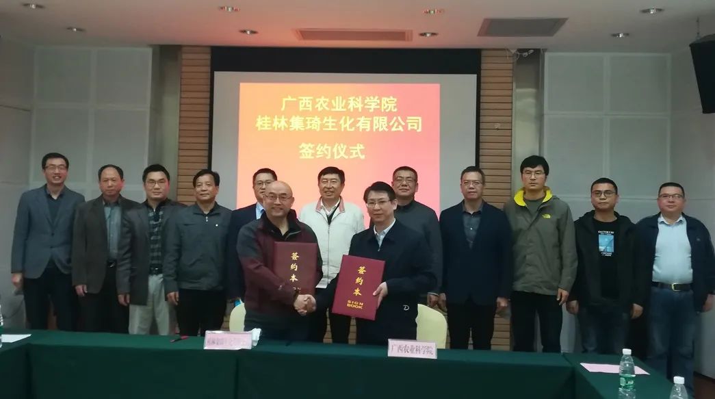 為了充分發(fā)揮雙方優(yōu)勢(shì),共同推進(jìn)雙方在農(nóng)業(yè)科技領(lǐng)域的全面合作,促進(jìn)雙方的共同發(fā)展,促進(jìn)桂林集琦生化有限公司在農(nóng)業(yè)科研、農(nóng)業(yè)科技示范基地建設(shè)和富硒產(chǎn)業(yè)發(fā)展,本著優(yōu)勢(shì)互補(bǔ)、互惠互利、長(zhǎng)期合作的原則,就科研成果轉(zhuǎn)化、技術(shù)推廣、人才培養(yǎng)、項(xiàng)目規(guī)劃等開展廣泛的合作與交流。廣西壯族自治區(qū)農(nóng)業(yè)科學(xué)院與桂林集琦生化有限公司在2020年4月8日簽訂了戰(zhàn)略合作協(xié)議。廣西農(nóng)科院原院長(zhǎng)及研究員白先進(jìn)、廣西農(nóng)科院成果轉(zhuǎn)化處處長(zhǎng)車江旅、廣西農(nóng)科院植保所所長(zhǎng)于永浩、廣西農(nóng)科院蔬菜所所長(zhǎng)陳振東、廣西農(nóng)科院資環(huán)所副所長(zhǎng)(正處級(jí))劉永賢、廣西農(nóng)科院葡萄所所長(zhǎng)謝太理、廣西農(nóng)科院成果轉(zhuǎn)化處副處長(zhǎng)張晉、全國(guó)合經(jīng)委富硒產(chǎn)業(yè)專業(yè)委員會(huì)主任及桂林集琦董事長(zhǎng)郭正、全國(guó)合經(jīng)委富硒產(chǎn)業(yè)專業(yè)委員會(huì)秘書長(zhǎng)及桂林集琦副總經(jīng)理馬志國(guó)等二十多名成員參與本次會(huì)議。