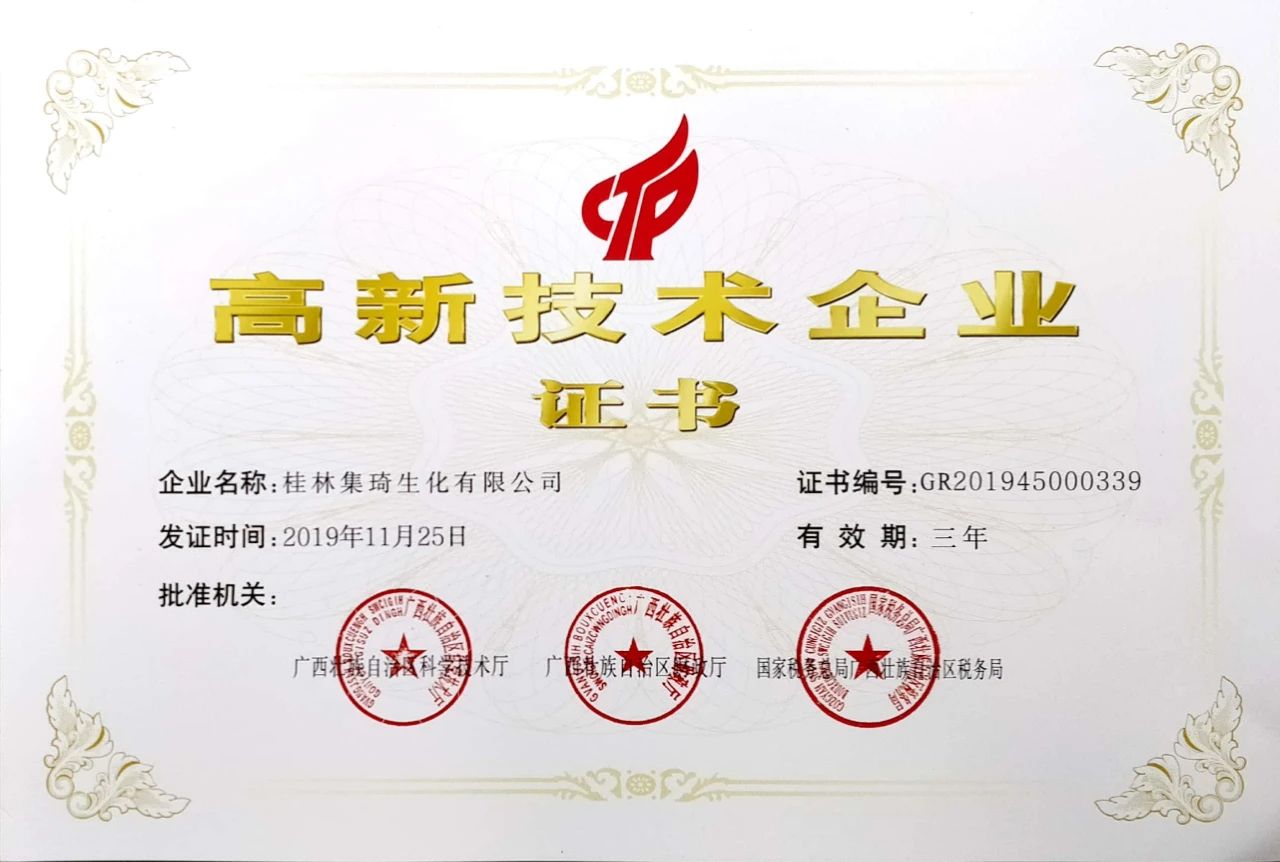 近日,廣西科技廳、財政廳、稅務局再次對我公司下發(fā)了高新技術企業(yè)證書和牌匾,認證時間從2019年11月25日起。這是公司自2013年以來連續(xù)第三次通過高新技術企業(yè)資格認定。